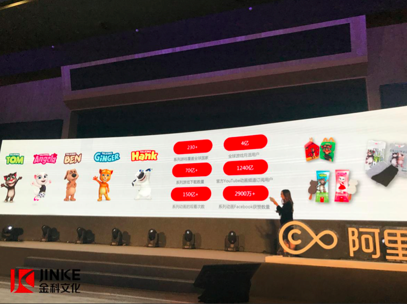 金科文化旗下Outfit7公司高管Nejc Babic作为金科文化代表,上台向几十家新闻媒体及接近300家天猫各类目头部商家与会嘉宾介绍了公司旗下IP“会说话的汤姆猫家族”的起源和发展,并详细地描绘了金科文化和该IP在未来的发展规划。会说话的汤姆猫家族作为本次大会唯一一个诞生于欧洲的IP,向参会者披露的信息以及大电影的发布计划等都引起了现场一阵阵“wow”的惊叹和掌声。